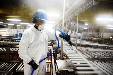 Дезинфекция — это процедура уничтожения бактерий и опасных микробов. Дезинфекция помещений, где происходит непосредственно производство продуктов, должна проводиться ежедневно. Территорию предприятия убирают и чистят каждый день. Зимой убирают снег, а летом поливают водой. Мусор нужно вывозить каждый день, а сами площадки по сбору мусора обрабатывать дезинфицирующими средствами.